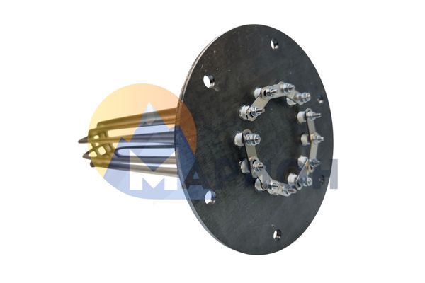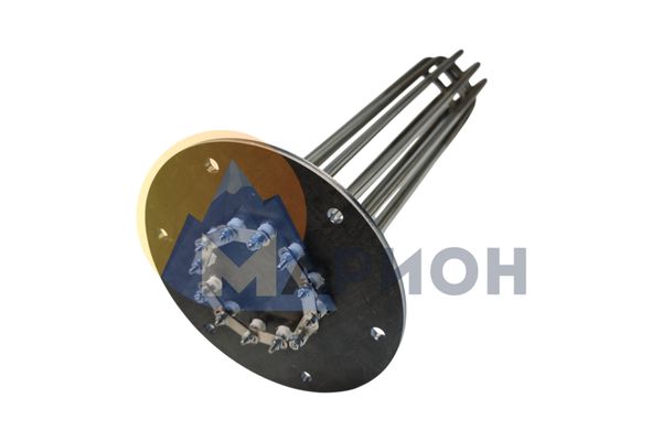 Длина ТЭН — 1100 мм, диаметр трубки — 10 мм. Мощность — 2 кВт, расчетное напряжение сети — 380 В. Подключение реализовано при помощи фланца из углеродистой стали.
